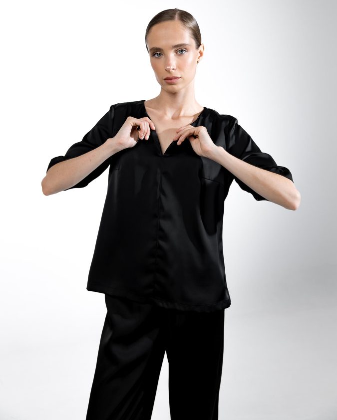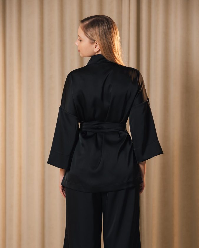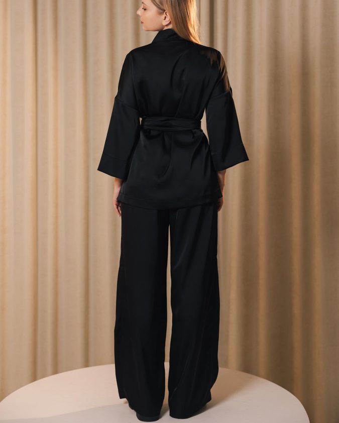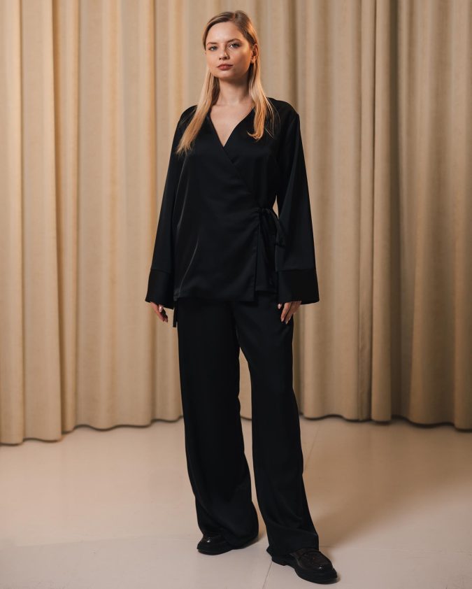 Костюм Hug із сатину — стильний і комфортний комплект, створений для роботи та повсякденного ритму. Кімоно на запах із рукавом 3/4 та штани з еластичною талією забезпечують зручну посадку й свободу рухів. Гладка сатинова тканина приємна до тіла, майже не мнеться та зберігає елегантний вигляд протягом усього дня.