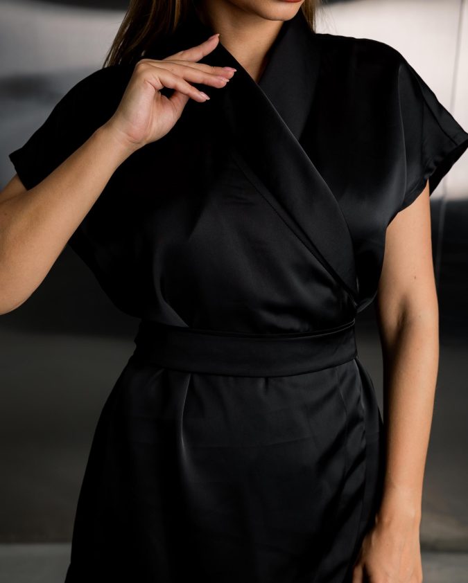 Кімоно HUG із сатину - компонент костюма Hug. Стильне кімоно створено для роботи та повсякденного ритму. Кімоно HUG на запах із рукавом 3/4 забезпечує повну свободу рухів. Гладка сатинова тканина приємна до тіла, майже не мнеться та зберігає елегантний вигляд протягом усього дня.