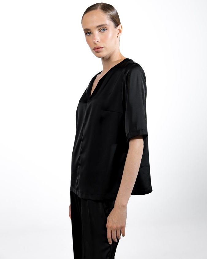 Футболка вільного крою Grace - компонент костюма Grace. Легка тканина з делікатним шовковим блиском приємна до тіла, майже не мнеться та забезпечує свободу рухів протягом усього дня.